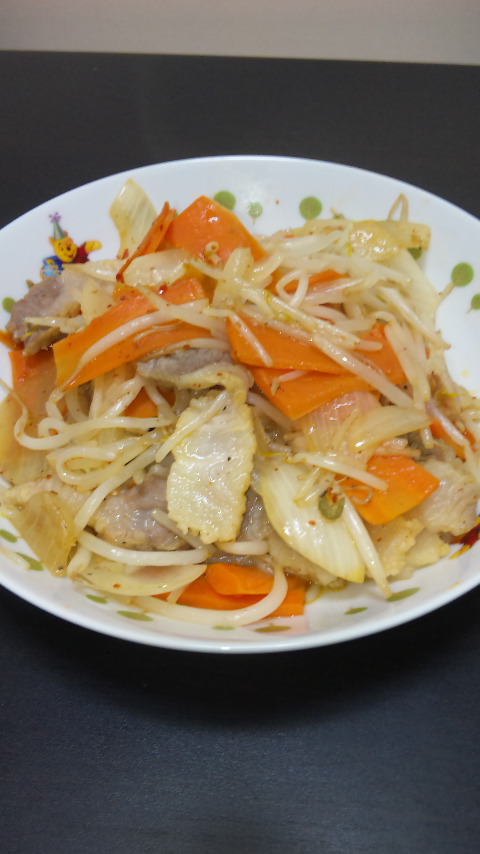 前回載せた塩豚ともやし炒めを合わせた感じ
