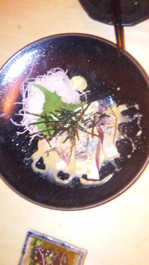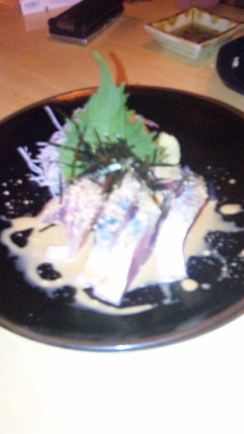 どんなのか気になって頼んだら鯖の刺身に胡麻ダレがかかってた。